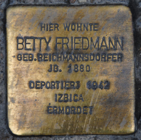 Hier wohnte Betty Friedmann, geboren am 13. August 1880 in Trabelsdorf. Betty Friedmann war mit dem Kaufmann Jakob Friedmann verheiratet.
