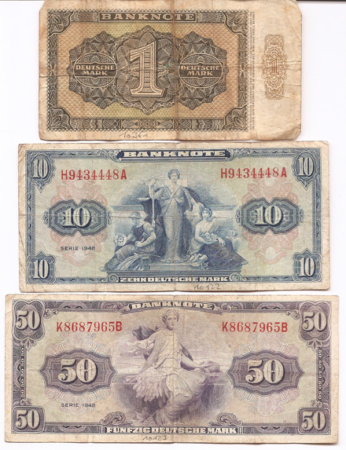 Die Ästhetik der „westlichen Welt” wurde nicht nur nach und nach in der Musikkultur und in der Mode unübersehbar, auch die ersten Geldscheine der mit der „Währung“ im Sommer 1948 eingeführten „D-Mark“, der „Deutschen Mark“, ähneln auf den ersten Blick stark den US-Dollar-Scheinen.