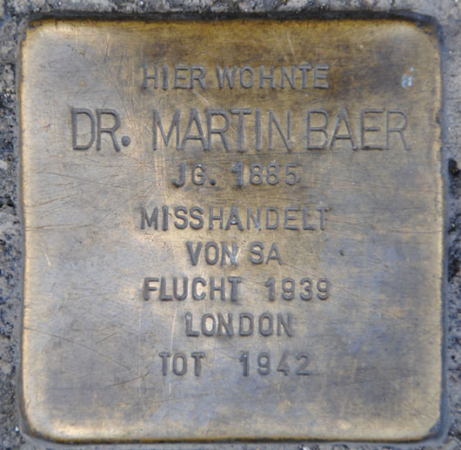 Hier wohnte Dr. Martin Baer, geboren am 20. September 1885 in Coburg.