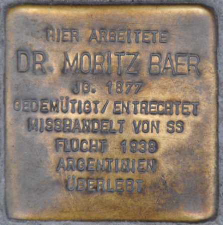 Hier arbeitete Dr. Moritz Baer, geboren am 6. Juli 1877 in Coburg.