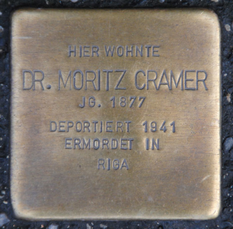 Hier wohnte Dr. Moritz Cramer, geboren am 24. April 1877.