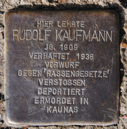 Hier lehrte Dr. Rudolf Kaufmann, geboren am 3. April 1909 in Königsberg. Dr. Kaufmann trat am 15. Oktober 1935 eine Stelle als Lehrer im Internat von Hermann Hirsch an.