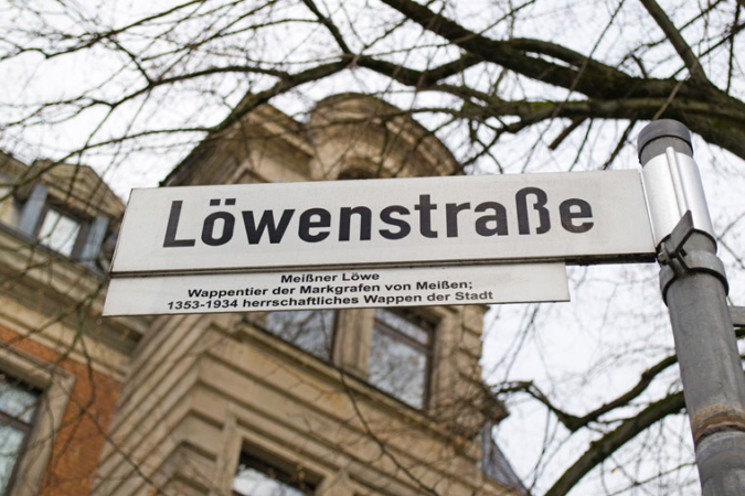 Die heutige Löwenstraße endet im Westen an der Viktoriastraße und geht an ihrem östlichen Ende in die Hindenburgstraße über.