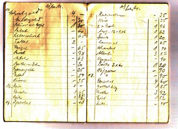 Kürzlich habe ich eine Seite aus dem Haushaltsbuch meiner Mutter aus dem Jahr 1953 entdeckt. Ich war damals 13 1/2 Jahre alt.