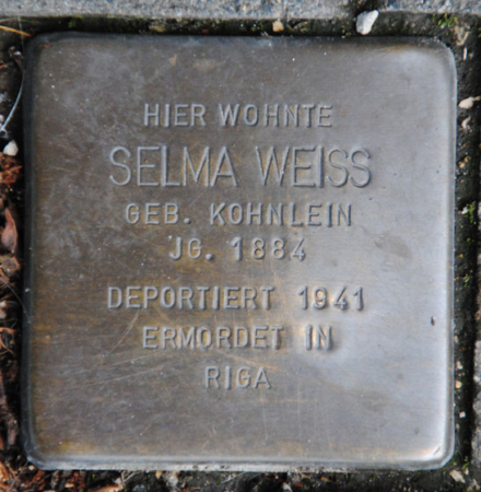 Hier wohnten Selma und Julius Weiß. Selma Weiß, geborene Kohnlein, kam am 13. November 1884 in Beyersbach auf die Welt, Julius Weiß am 20. April 1881 in Pawlowitz. Seit 1920 lebte das Ehepaar in Coburg. Den beiden gehörte ein Schuhgeschäft in der Spitalgasse 5.
