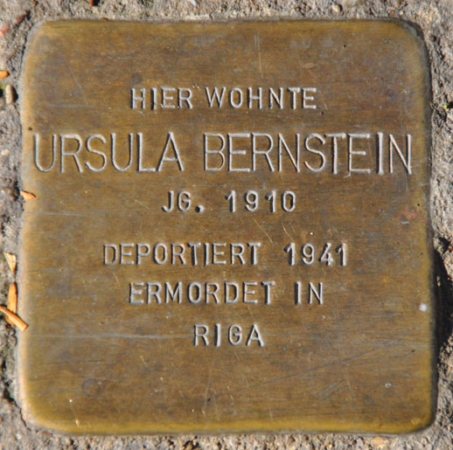 Hier wohnte Ursula Bernstein, geboren am 19. März 1910 in Coburg. Die junge Frau war gerade mal 31 Jahre alt, als sie am 27.11.1941 nach Riga deportiert wurde.